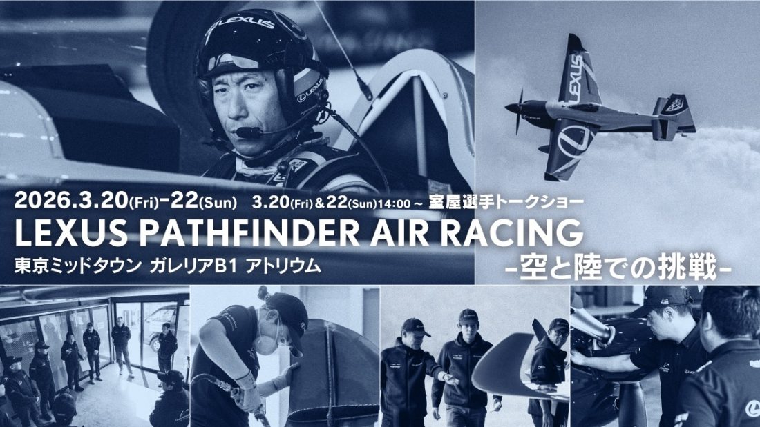 LEXUSと室屋義秀選手、境界線を越えて”挑戦”をしている「LEXUS PATHFINDER AIR RACING」。お互いの技術と情熱が交差する特別展示を、東京ミッドタウン六本木にて開催します。